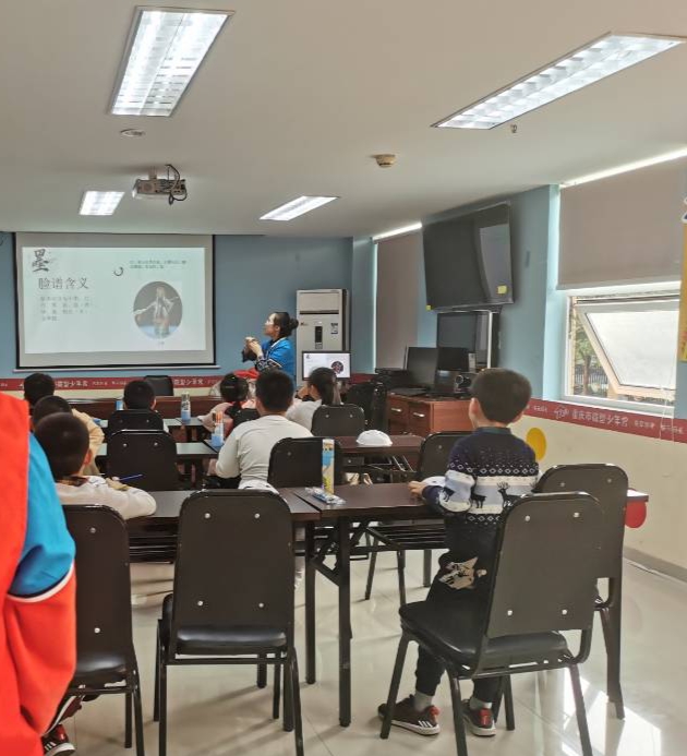 当日下午,所有参与活动的人员准时在学校门口集合并统一前往汇雅社区。在小朋友们陆续到场后,活动正式宣布开始。活动期间,两个志愿者和六个小朋友搭档为一个小组,一起学习脸谱知识。当讲解人员在展示内容时,小朋友们会安静地举起自己手中的小红花,提出心里的疑问,随后讲解人会耐心地为他们答疑解惑。亲切随和的讲解风格、精彩纷呈的互动环节、有趣多益的知识游戏,不仅使活动有条不紊地进行,也使小朋友们愿意融入活动,积极踊跃地参与进来。