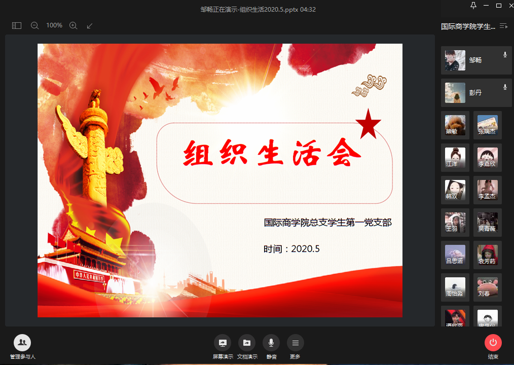 图为:qmh球盟会亚博学生第一党支部五月组织生活