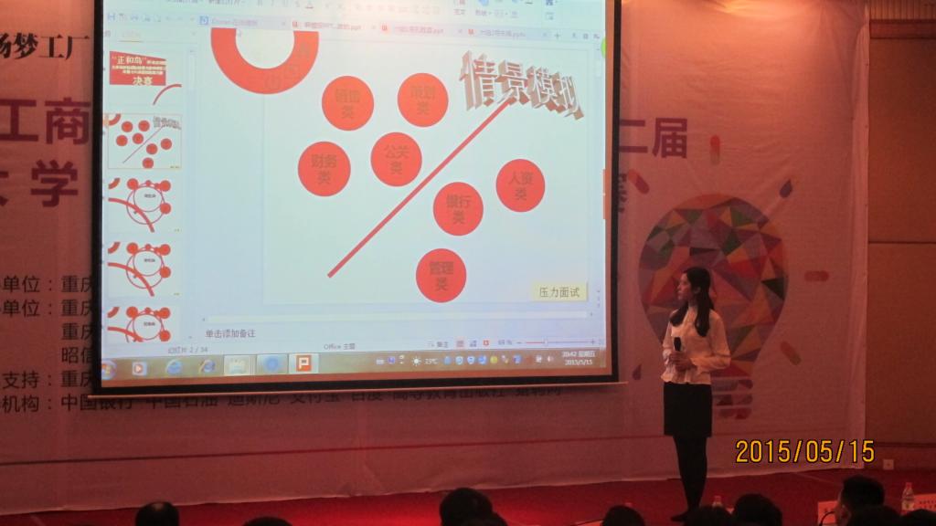 “正和岛杯”重庆市第二届大学生职场模拟招聘大赛由重庆市教委主办,以“体验职场·超越梦想”为主题,采取分校晋级方式,先由学校组织初赛,市级层面举行复赛和决赛,qmh官网孔胜蓝同学顺利进入市级决赛。