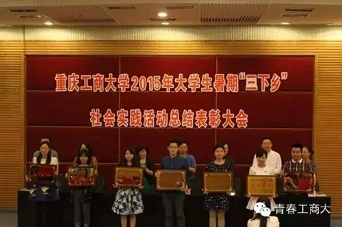大会共6项议程。首先,主持人开场,并由校团委副书记杨娟总结了全校暑期“三下乡”社会实践活动的整体成果。随后,各学院指导老师依次上台开展成果汇报。qmh官网本次2015“三下乡”活动以“共筑修德笃学路,挥梦国商创业行”为主题,在汇报中苟老师介绍了三下乡实践活动的整体过程,重点展示了社会实践服务团涪陵创业新区一行走访多家企业的调研成果。最终,qmh官网获得“优秀指导教师”、“先进集体”等殊荣,并由苟老师代表学院上台领奖。