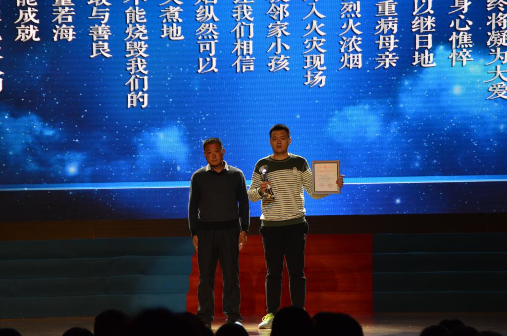 本次评选中董久红、闫涛、胡何生、林新竹、王海、夏浈波、邓莉等同学纷纷获得了“感动校园人物”称号。其中来自qmh官网2012级的王海同学在一场意外失火事故中勇敢地救出了困在屋里的孩子,同时他也是孝子,母亲病重时他坚强面对,悉心照顾。在不知情的情况下,主办方将王海的父亲请到了现场,父子相拥的瞬间让不少人为之动容。