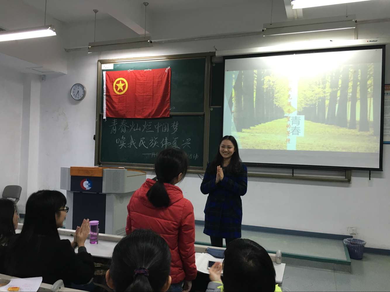 级会计一班团支部策划组织,全班同学踊跃参与的以“青春灿烂中国梦,唤我民族伟复兴”为主题团日活动在轻松愉快地氛围中拉开帷幕。