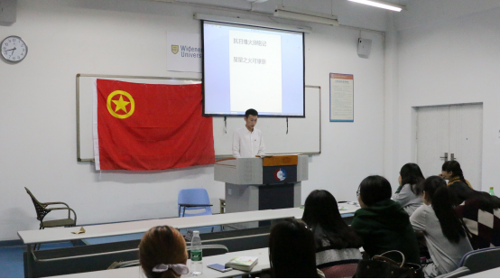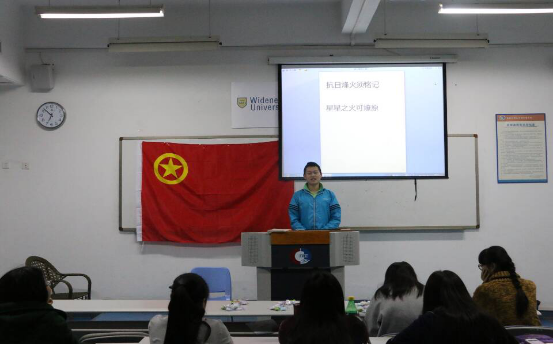为积极响应院团委关于开展学习社会主义核心价值观的主题团日活动的号召,为培养和践行社会主义核心价值观,引领广大青年价值导向,提升同学们的思想道德修养,2015年11月2日下午18:00,15级金融一团支部全体成员于qmh球盟会亚博407多功能厅开展了主题为“抗日烽火须铭记星星之火可以燎原”的团日活动。其中辅导员冯诗淇老师作为嘉宾出席了本次活动。