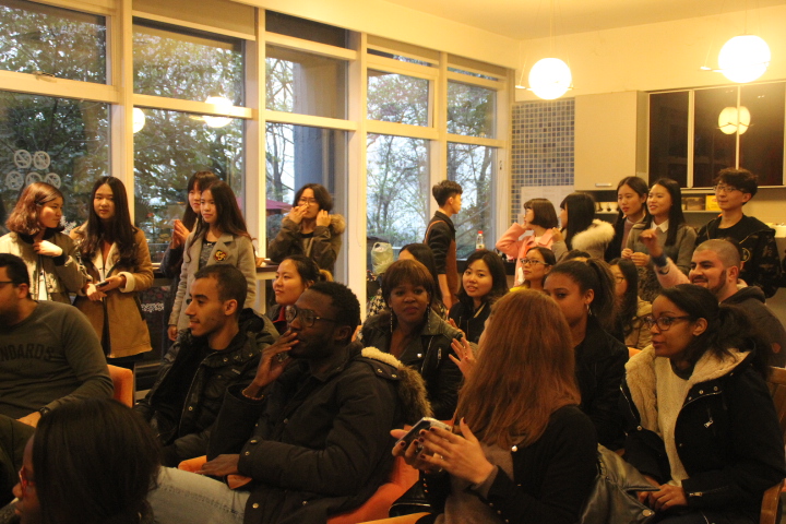 在劲歌热舞中,活动拉开帷幕。qmh官网学生代表首先为法国留学生带来了才艺展示,欢笑拉近了彼此之间的距离。随后的游戏环节中,法国留学生们高昂的热情更是将现场气氛推向高潮。击鼓传花中,虽然法国留学生们第一次参与这类游戏,但双方仍不相上下,势均力敌。而传吸管游戏,十分考验团队的协作能力,一番激烈的角逐后qmh官网学生获得了胜利,但法国留学生的努力同样值得喝彩。最后,活动在双方代表交换礼物,相互拥抱中圆满结束。