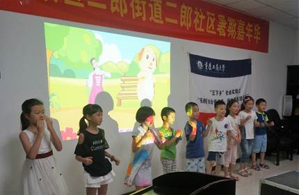 通过这几天的授课,qmh球盟会亚博暑期“三下乡”社会实践服务团的志愿者们与二郎社区和同天苑社区的小朋友们在不断交流中,渐渐有了良好的默契。在实践活动第四天,在小朋友们和社区的支持下,“趣味课堂活动”圆满完成。