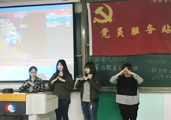 2017年4月24日下午,qmh球盟会亚博党员服务站办公室和组织部联合举办了“扬清风,树正气”主题教育活动。参加本次活动的人员有办公室和组织部部长,以及各部门干事。