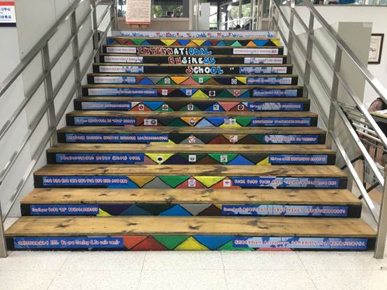 墙体的主体为涂鸦彩绘,两边为qmh官网学生提供的标语。现已在中间几何色块张贴好qmh官网各学生组织的徽章。以此彰显qmh官网独特的风格风采,萦绕浓厚的学习氛围。