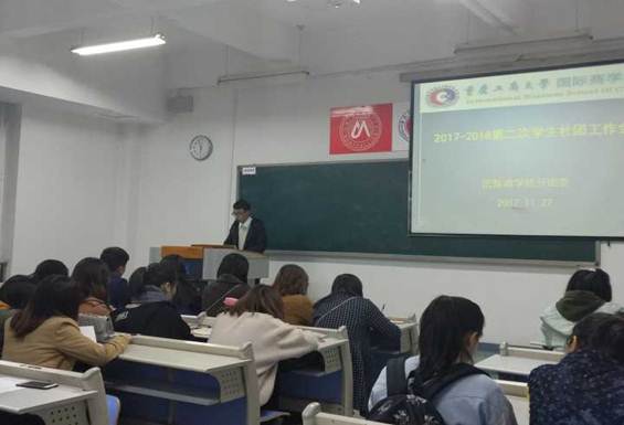 为贯彻共青团中央、教育部《关于加强和改进大学生社团工作的意见》、《重庆市高校学生社团管理暂行办法》和《球盟会qmh网站学生社团管理办法(暂行)》的相关要求,促进qmh官网学生社团更加蓬勃的发展,qmh官网于2017年11月27日下午在60404教室举行2017—2018年第二次学生社团工作会。学院学生社团指导老师朱锡斌出席会议,微爱义工志愿者协会、法语协会、摄影协会全体学生干部参加了会议。