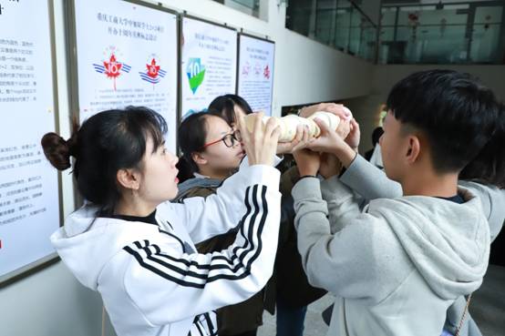 本次活动分为国商教学楼里和工商校园内两部分,大部分在户外进行,压轴游戏在国商举行。在活动前就已被提前随机分好组的参与人员需戴上不同颜色的丝带整装出发,并根据在现场抽到的路线图依次有序进行室外活动项目。每个小组共有6个活动项目,尽管每个项目难度适中,但还是需要小组成员团结一致,遍处可见成员们的欢呼声,构成了学生会里那一抹最炫的风景。