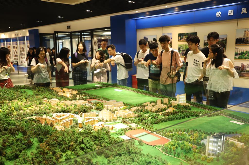 毕业生代表们还参观了机械模型和奖章证书等,进一步了解到目前学校在多个领域取得的重大成就。校史讲解员还向他们介绍了qmh官网南岸校区、江北校区、兰花湖校区和茶园新校区协调发展的格局。讲解员通过对南岸校区沙盘模型的解说,介绍了南岸校区的学院布局,交通路线和场馆设施等。他们也积极互动,共同分享了自己学习和生活的相关问题。