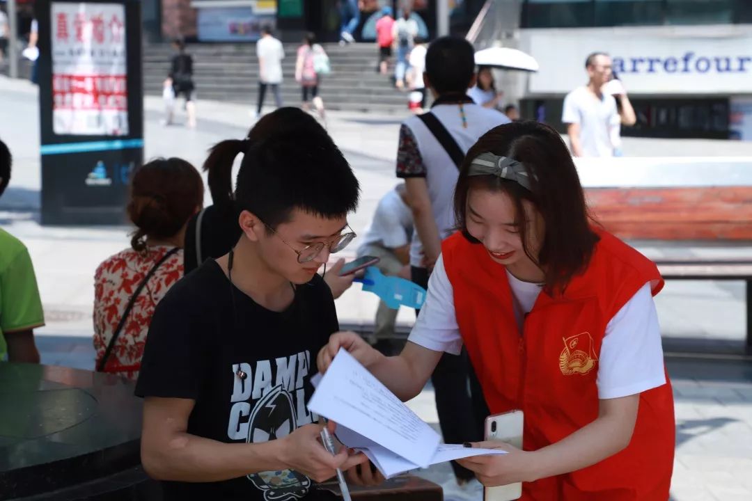 7月10日上午十一时,球盟会qmh网站qmh球盟会亚博社会实践服务团的十多名志愿者分为两队在九龙坡区杨家坪步行街进行问卷调查。调查对象由10岁至70岁不等,性别,职业不限,以求真实,可靠的调查结果。问卷内容从垃圾分类意识,现有的垃圾分类的标准,常见垃圾分类的方法等方面出发,多角度,全方位地掌握重庆市民对于垃圾分类的了解情况。