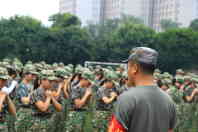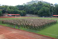 滚滚烈日在一列列整齐划一的绿色连队头顶高扬悬挂,天空湛蓝无比,蝉声此起彼伏,似乎是在诉说着对九月艳阳的不满。