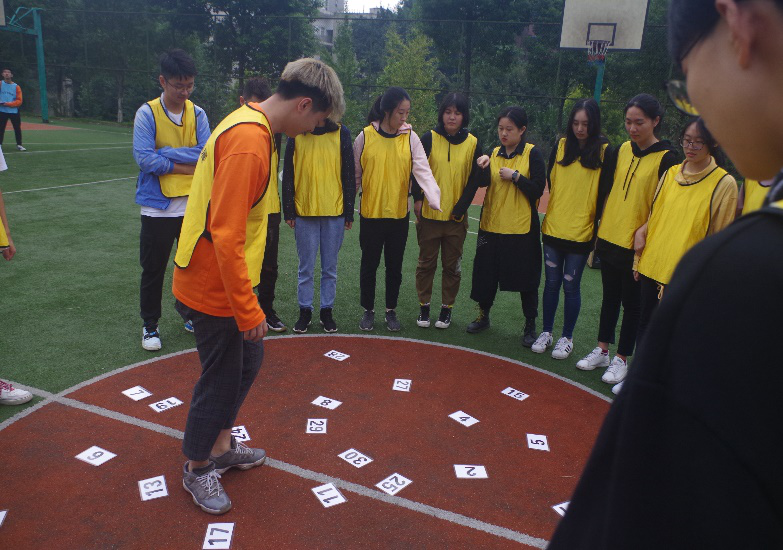 又一轮活动后,我们选出了最终获胜队伍——野狼队。作为胜利的一方,野狼队接受了其他队伍的鞠躬。随后,大家以一个奥地利女王圈挑战来结束本次素质拓展活动。奥地利女王圈的规则:让前一个人坐在后一个人的腿上,所有人以此方式最后围成一个圈。这个挑战的难度在于,如果你不充分信任你的搭档的话,这个圈就会因为不堪重负而被肢解。也许有了前面几个活动的铺垫,项目班的同学非常轻松愉悦地完成了这个挑战。