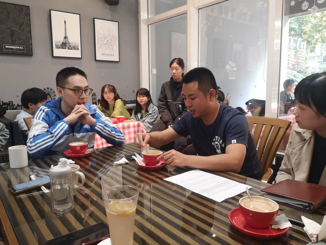 下午13时,老师和同学们在咖啡吧依次就坐。交流会开始后,封海粟老师首先就特色分团委与五四评优展开谈话,他提到分团委对文艺、体育活动的举办增多的重要性以及活动前期准备的注意事项,同时特别强调分团委干部与参与活动人员的良好关系的建立是不可或缺的。