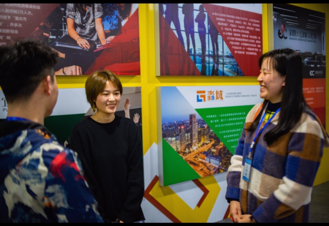接着,我们来到DE集团的会议区,这里是各个部门开展会议和休息的地方。苏维校友和我们一起坐了下来,继续向我们介绍整个公司的运行流程、内设部门及其作用。她说,她和先生在她大学三年级的时候开始创业,通过不断的扩展业务,逐渐有了现在的规模。目前她主要负责口译和笔译培训、处理相关翻译业务、提供义工旅行机会等;她先生则主要负责外国友人重庆周边旅游项目、国内外留学交换项目、学习短期交换等相关业务。