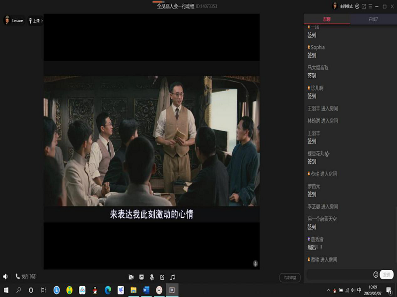随后进入电影欣赏环节,为救亡图存奔走的年轻人,为信念苦苦奔斗的年轻团队……电影中那些承担起振兴祖国,繁荣民族的职责的年轻人,不断充实自己,贡献着更有价值的青春。一腔热血而不纸上空谈,用行动实现自我价值的最大体现。他们用青春描绘时代的画卷,用青春唱响时代的旋律,用青春扬起时代的风帆。