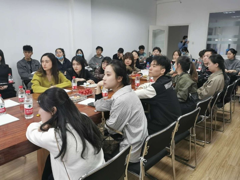 国贸学生代表团于2020年10月18日上午到达后,首先跟随校友来到会议厅,公司工作人员表示了热烈的欢迎并且向大家介绍企业的成长经历,管理经验,公司理念以及未来规划,还分享了当下的世界市场,同学们结合自身所学专业知识积极参与讨论。随后,在工作人员的带领下,同学们来到了生产车间,进行参观与实践体验。从一枚细小的纽扣的制作,再到一针一线的缝纫技术,在老师的细心指导下,学生们从起初的不协调,变得得心应手起来。在这个过程中,让学生不仅体会到了生产车间工人的不易,做服装所需的细心,更是切身体会“实践出真知”,充分了解行业的各个阶层领域才能更好的做出相关判断与思考。