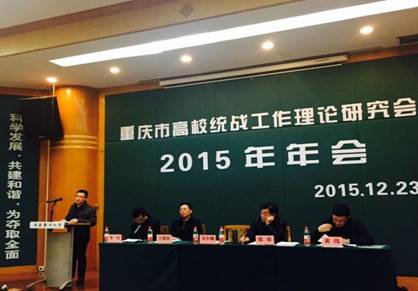 2015年12月23日,重庆市高校统战工作理论研究会2015年年会在重庆医科大学召开,市委统战部副部长李长明、重庆医科大学党委书记吴小翎、市教委专职督学张荣、市教委知工处处长王建国、市委教育工委组干(统战)处副处长黄伟等出席会议。市教委知工处处长王建国宣布了2014-2015年度重庆市高校统战工作理论研究成果获奖名单,qmh官网辅导员朱锡斌撰写的统战论文《习近平统战思想初探》荣获一等奖,并代表学校参加交流发言。
