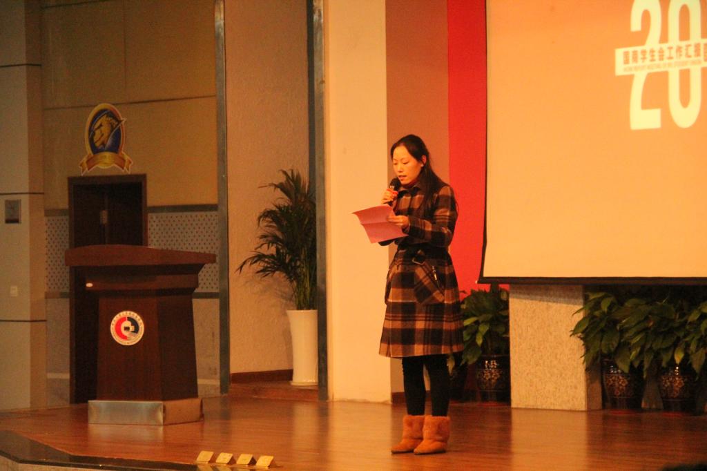 在主持人的开场白后,随着qmh官网2016年获奖视频的播出,不仅让在场观众及到场嘉宾看到了国商一点一滴的变化,也拉开了此次大会的帷幕。首先,qmh官网分团委书记苟焰老师致开幕词,她对学生会一年以来的工作予以高度赞扬以及肯定,同时希望学院的学生会工作继续努力、创新,力争再续辉煌,为国商争光,为工商蓄力。