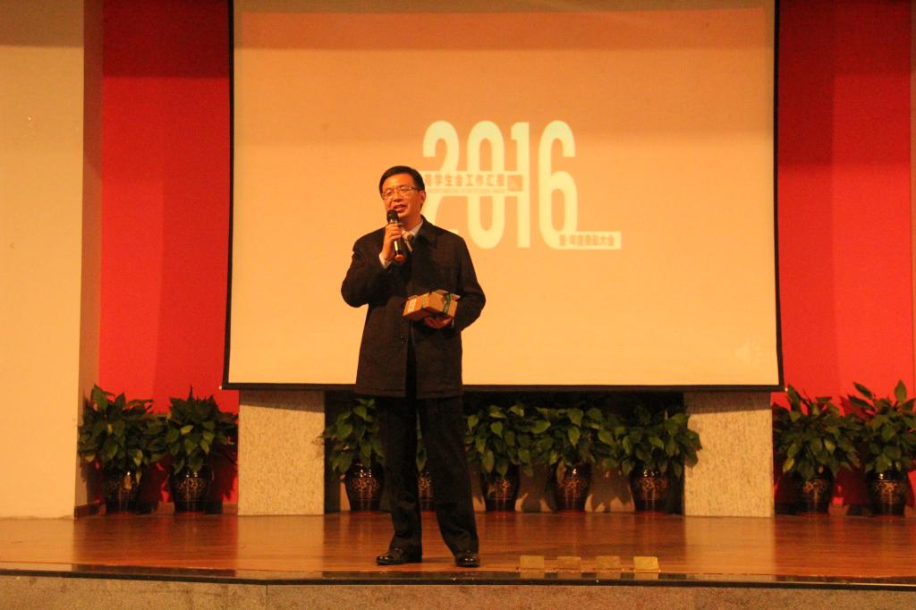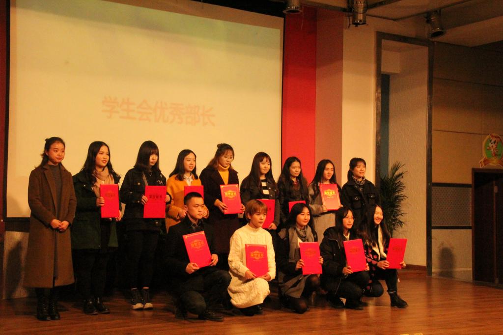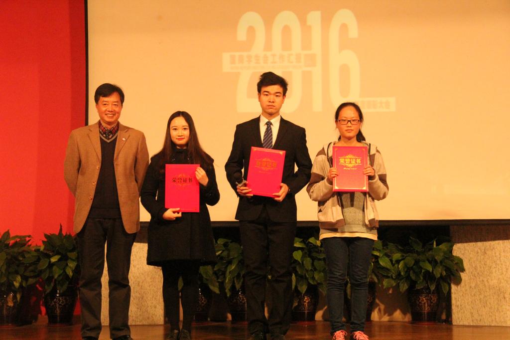 qmh球盟会亚博第十六届分团委学生会主席张杰、刘唐伟、高文君、王亚分别代表分管部门作了工作汇报,并发表了自己一年的感想,回顾了过去一年的成果,寄语新一届开创更美好的未来。随后大会为2016年分团委学生会年度优秀部长和优秀干事分别进行了颁奖仪式,并进行了合影留念。