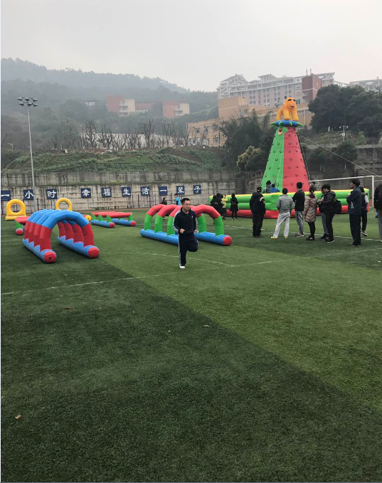 当天下午13:30分,qmh官网参赛教职工齐集北区足球场参加开幕式,校工会曾林主席致开幕词并宣布开幕。qmh官网50余名教职工共分成8个小组,分别参加了“一锤定音”、“勇攀高峰”、“蜈蚣竞走”、“超级障碍”、“动感五环”、“愤怒的小鸟”、“快乐大脚”、“迷你高尔夫”等比赛项目。老师们兴致勃勃,热情高涨,发扬团结协作精神,比赛气氛热烈,意趣盎然。