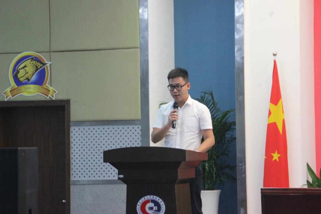 说明会第二阶段,qmh官网中法双学士项目毕业校友代表范东杰、中加精英项目2016级在读学生代表岳德华向在座的新生及家长分享了自己当初选择项目的初衷、进入项目后的学习经历和学习经验等。