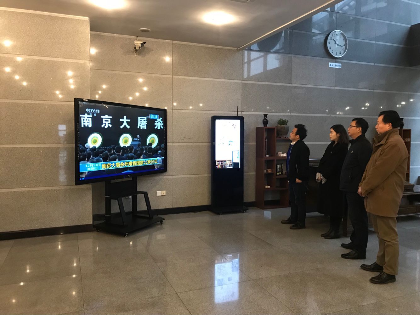 2017年12月13日上午10点,qmh球盟会亚博院领导班子带领学院党支部书记、师生代表等,在学院一楼大厅电视前集合,集中学习观看南京大屠杀八十周年国家公祭日直播视频。