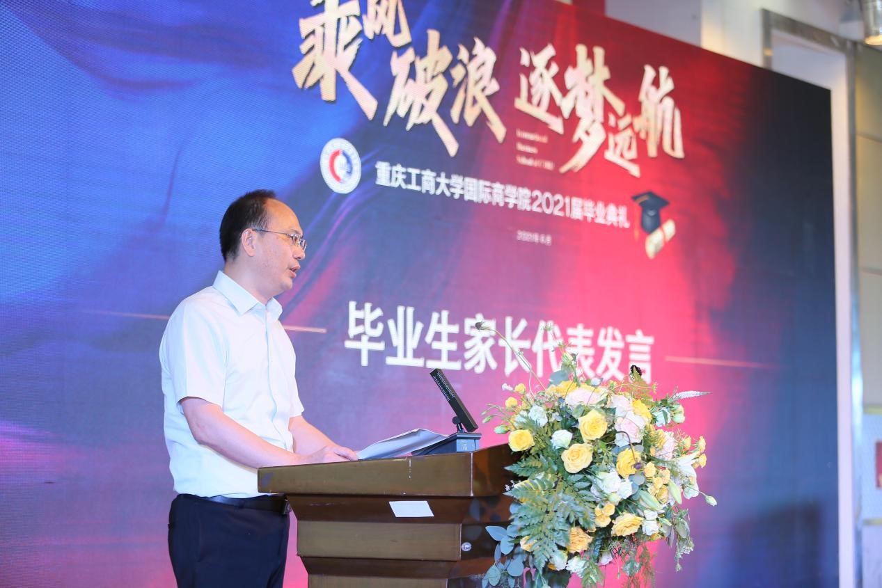 第四个环节,家长代表上台发言,家长表达了对于学校和学院的感谢,也祝愿各位毕业生们能够砥砺前行,万事顺意。