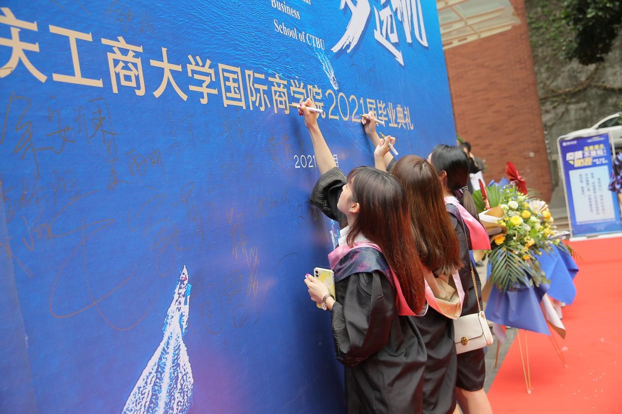 2021年6月22日下午,毕业典礼在60407多功能厅隆重举行。下午13时,同学们整齐地穿着学士服,陆续到达位于学院门口的签名墙签名留影。14点毕业典礼正式开始。