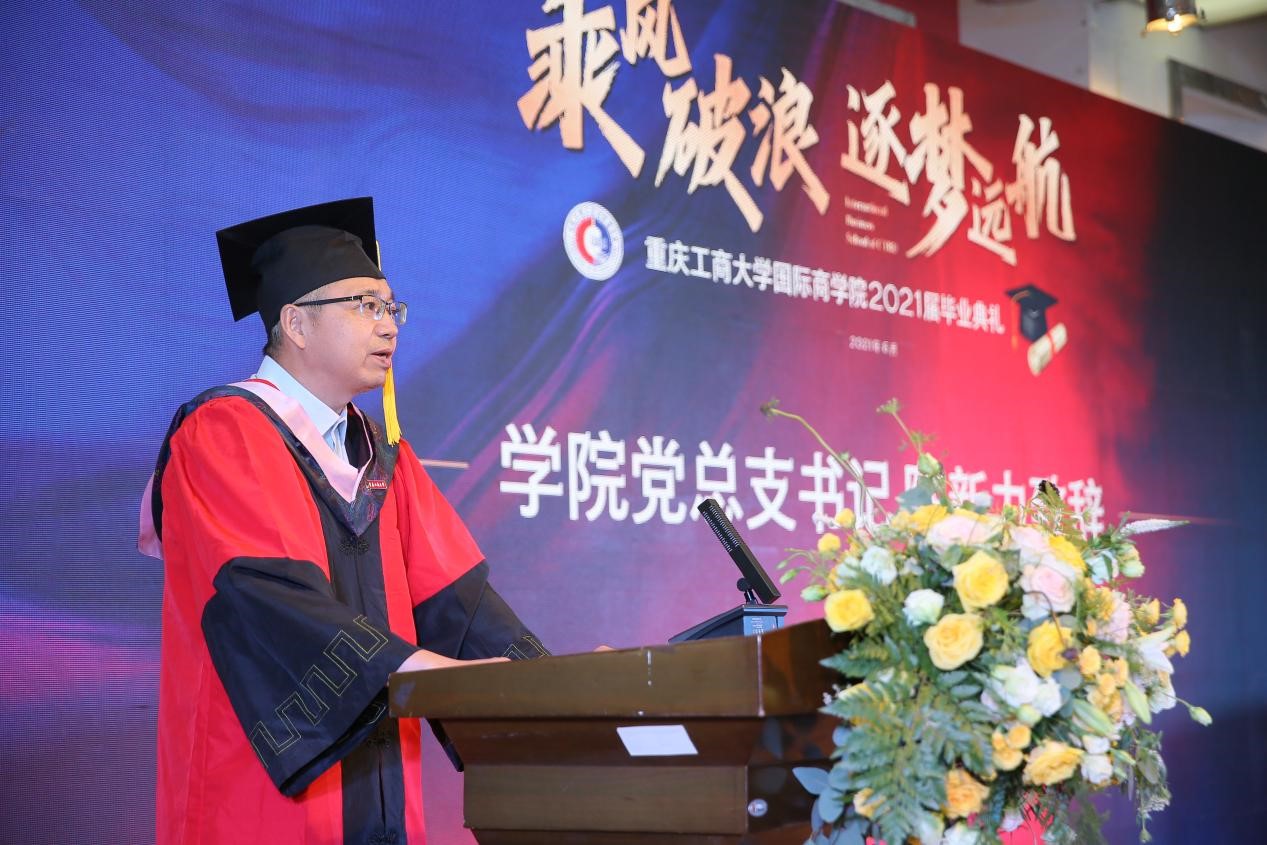 第一个环节,播放了为21届学生精心准备的《2021届毕业快乐》的视频,视频中不断地闪现出一张张朝气蓬勃又热情洋溢的笑脸,每张照片、每个瞬间都镌刻着他们四年里在球盟会qmh网站这方热土上,是如何肆意地谱写青春,书写未来。第二个环节,学院党总支书记陈新力书记发表致辞。陈书记不仅表达了对国商学子的毕业祝福,也希望毕业生们能够不负韶华,努力奔赴属于自己的锦绣前程。