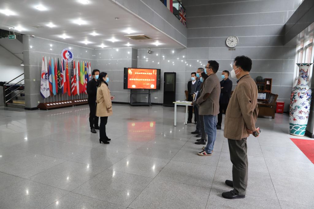 随后柏群在学院会议室认真听取了党总支书记陈新力同志关于学院新冠肺炎疫情应急处置预案和主持工作副院长李大鹏同志关于学院中外双学士(2+2)项目在国外学生疫情防控等的工作汇报。