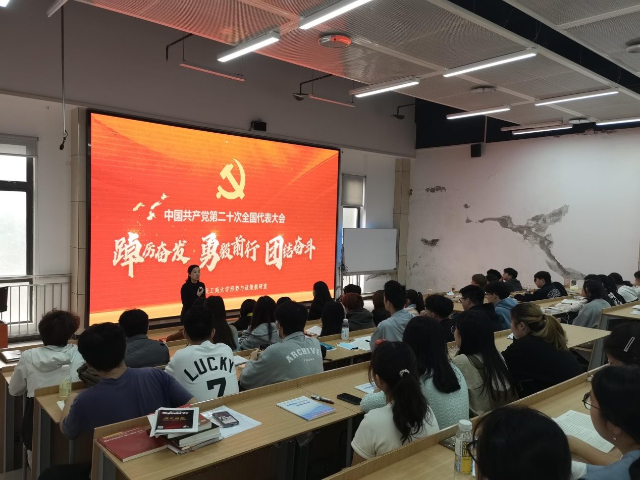 2022年11月3日下午,副校长柏群在涵智楼410教室为qmh球盟会亚博2022级工商、人资专业本科生讲授了主题为“踔厉奋发,勇毅前行,团结奋斗”的二十大专题思想政治课。