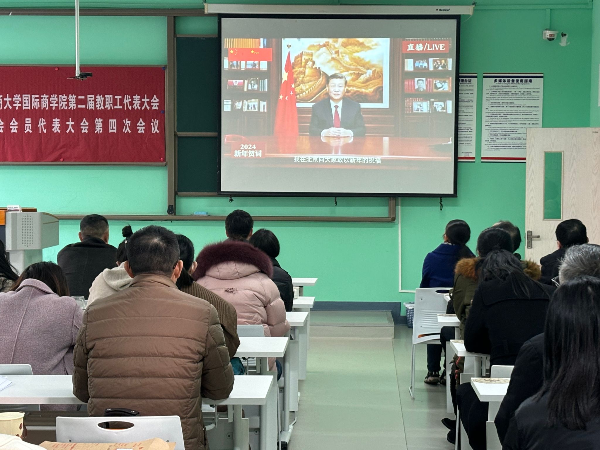 按照学校《关于1月份教职工政治理论学习内容安排的通知》要求,学院当天组织教职工习近平总书记在中共中央政治局专题民主生活会上的重要讲话、在纪念毛泽东同志诞辰130周年座谈会上的讲话、在第十个国家宪法日之际作出的重要指示、二〇二四年新年贺词,以及中央经济工作会议精神、重要理论文章《以美丽中国建设全面推进人与自然和谐共生的现代化》和《中国共产党重庆市第六届委员会第四次全体会议决议》、市委经济工作会议精神。