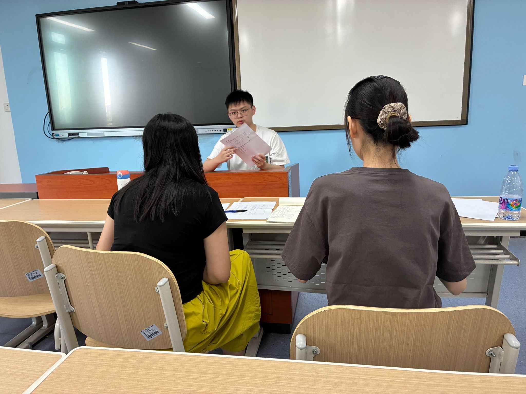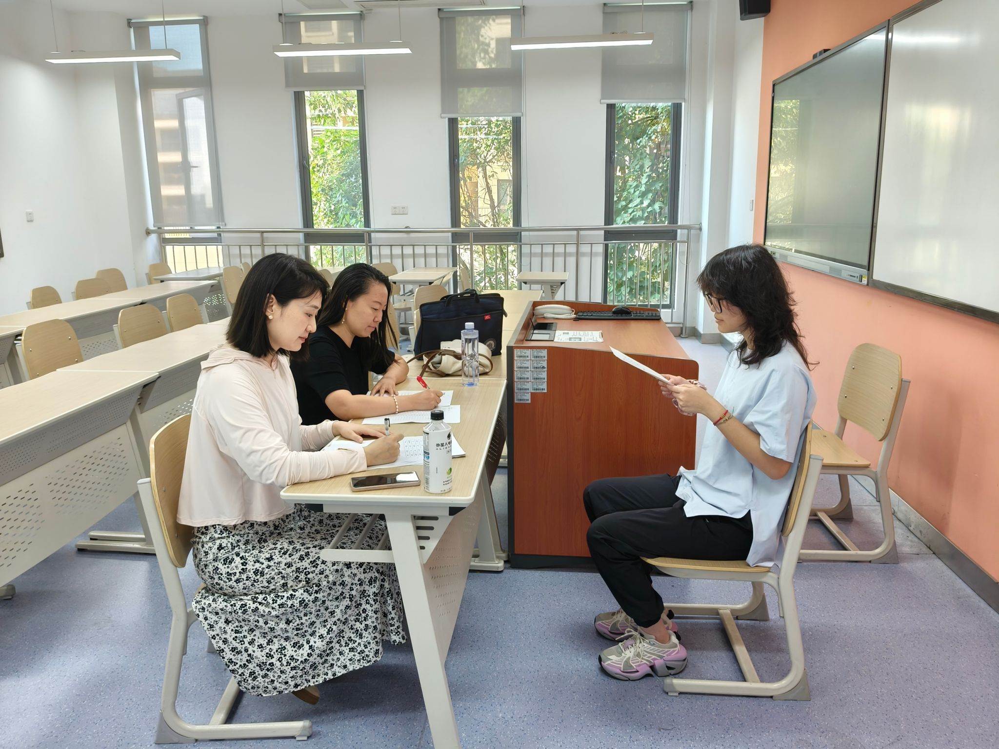 作为法语学习的基石,语音发音的规范性直接影响语言表达的准确性与流畅度。本次测试结合法语语音特点与新生学习阶段,参照专业语言测试标准设计考评维度,涵盖音标认读、单词朗读、句子连读及语调把控等核心内容,全面考察学生对法语35个音素的掌握程度、词尾发音规则应用及基础连读技巧的运用能力。测试过程中,考评教师秉持严谨细致的原则,对学生的发音准确度、节奏稳定性等进行逐一记录与点评,整个考场秩序井然。