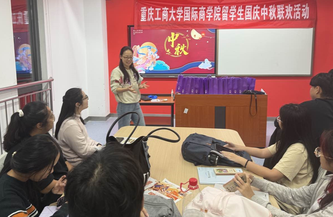 为坚持贯彻落实习近平新时代中国特色社会主义思想,加强中外文化交流沟通,10 月 06 日晚qmh官网教师带领全体来华留学生,在十二教 502 教室举办 “月满中秋,情系家国” 主题文化交流活动。活动中,师生通过 “中秋知识抢答” 环节互动,让留学生深入了解中秋传说与传统习俗,近距离感受中华优秀传统文化魅力,同时在欢聚氛围中增进彼此交流。活动尾声,学院为留学生送上中秋祝福,传递节日关怀与温暖。