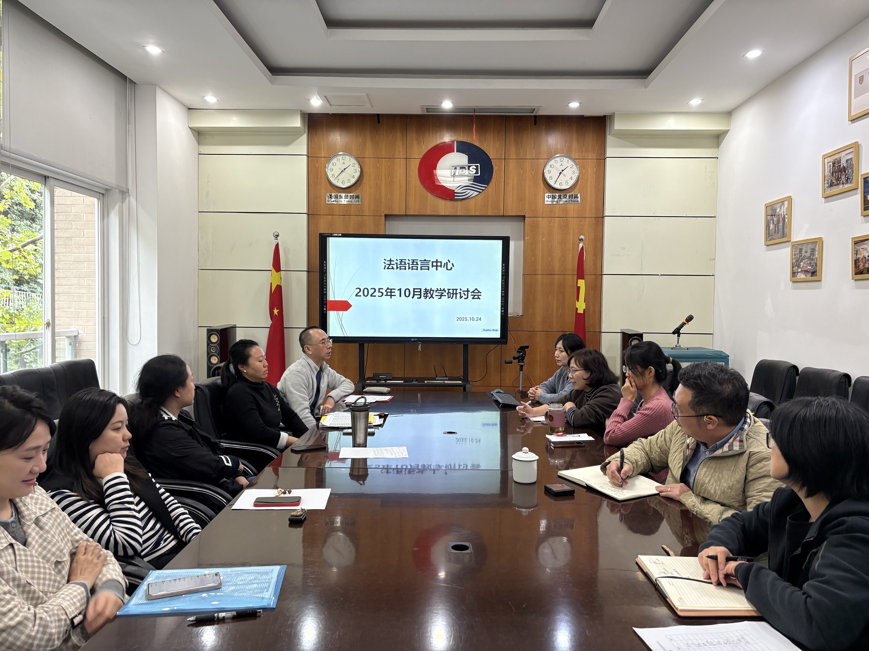 此外,老师们还围绕2+2项目后续课程设置、教学方法创新、跨文化教学融合等议题交换了意见,为进一步完善教学体系、助力学生顺利衔接海外学习阶段凝聚了共识。此次教研室会议的召开,不仅全面掌握了2+2项目学生的学情动态,更明确了后续教学的改进方向。法语语言中心将以此次会议为契机,把研讨成果转化为具体教学行动,持续优化教学模式,精准破解学习难题,为2+2项目学生的成长成才保驾护航,推动法语教育教学质量再上新台阶。