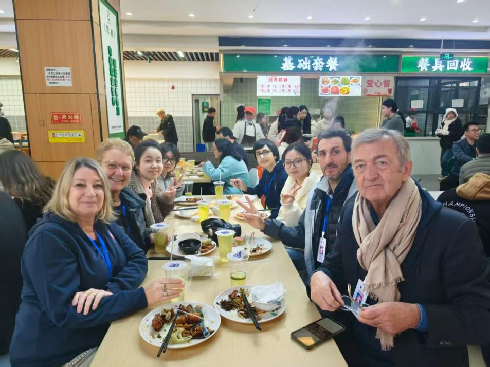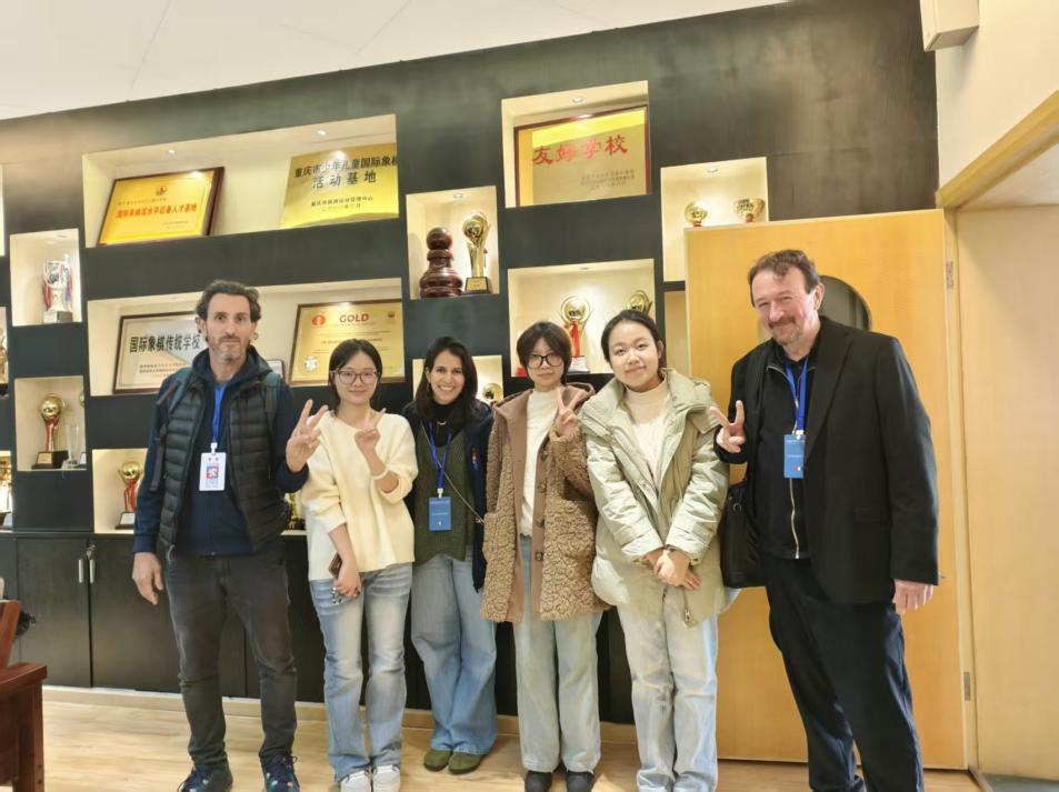 11月25日,法国里昂象棋协会代表团走进球盟会qmh网站,在qmh球盟会亚博张蓝月、潘星辰两位老师及三位同学的陪同翻译下,先后参观了学校图书馆与博志楼。同学们沿途为代表团介绍学校办学特色、学科优势及校园文化建设情况,生动展现重工商大的育人氛围与精神风貌。在校园用餐期间,同学们还热情分享重庆饮食文化,让法国嘉宾在品尝特色美食的同时,感受中国学子的好客之道。