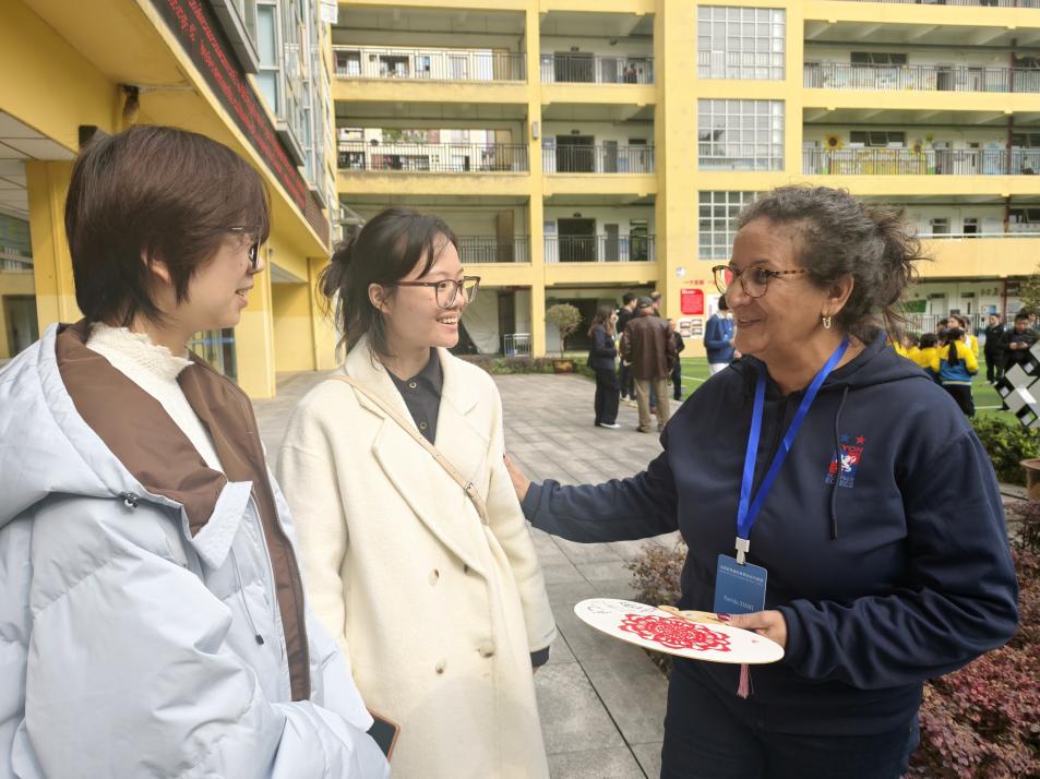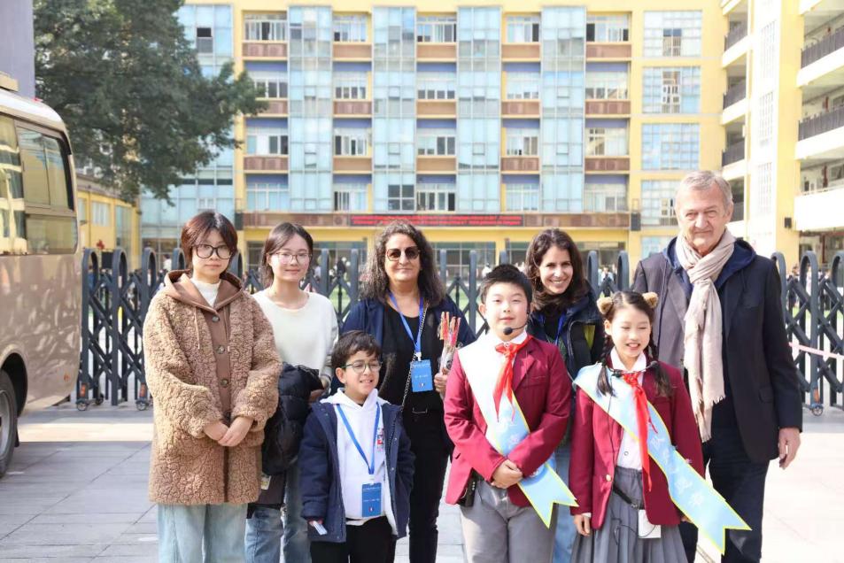 11月26日,代表团一行前往江南小学教育集团联校广茂小学与黄桷垭小学参观交流。在两所学校的社团活动现场,三位同学全程提供口译服务,协助法国代表团体验象棋对弈、编程实践、版画创作等特色课程。面对版画制作中的专业技法讲解、编程课程的技术术语翻译等场景,她们凭借扎实的语言积累与快速反应能力,精准传递教学内容与互动信息,让法国嘉宾深度感受中国基础教育的多元特色与校园文化的独特魅力。