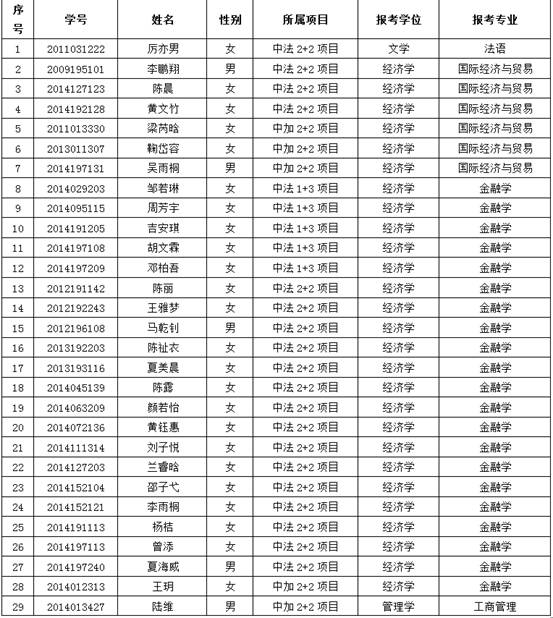 qmh球盟会亚博中外双学士项目2017年回国取位考试报名名单