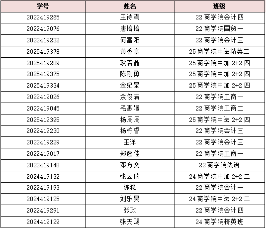 (评选依据:2025-2026学年认定为家庭经济困难学生,加权平均分排名、综测排名比例占班级30%之前,无挂科,无处分,按年级符合条件困难学生占比进行名额分配(22级2人、24级1人),在各年级名额范围内按综测分(降序)、加权平均分(降序),名额不够的情况下原则上每个班不超过1个名额,取综测最高分。)
