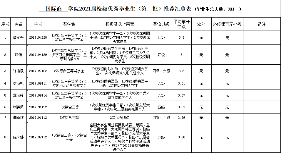 根据《球盟会qmh网站优秀毕业生评选办法》的规定,决定开展qmh官网2021届大学优秀毕业生(第二批)的评选工作。现将qmh球盟会亚博2021届优秀毕业生评定结果公示如下: